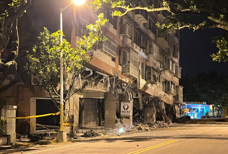 花蓮縣統(tǒng)帥大樓進(jìn)一步傾倒。(圖/臺(tái)灣“中時(shí)新聞網(wǎng)”)
