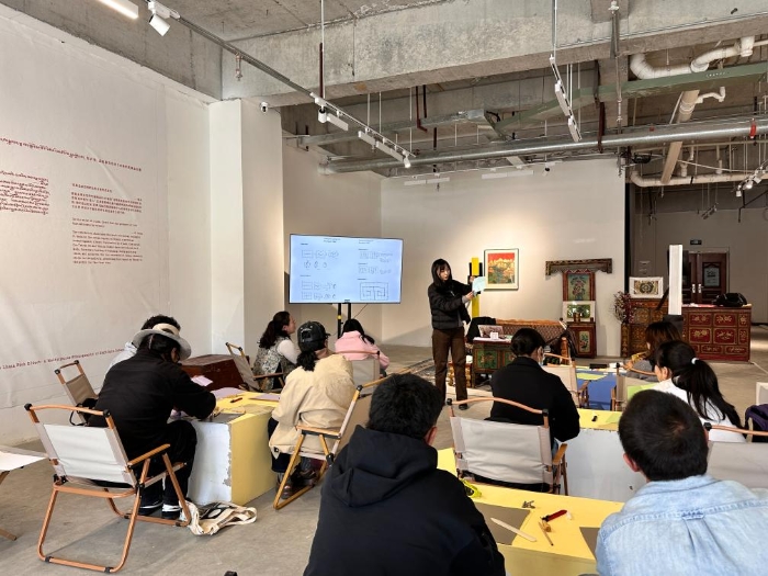 青年在拉薩市新型公共文化空間城市文化驛站“hima hima隙馬畫廊”參加藝術書裝幀工作坊活動。(德吉曲珍 攝)