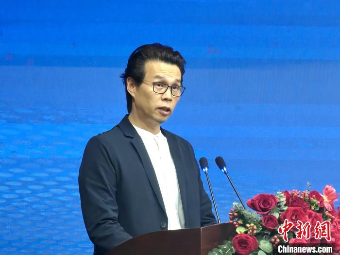 臺灣學者、福州外語外貿(mào)學院金融學院副院長簡逢陞在兩岸知識產(chǎn)權(quán)服務標準共通活動福州啟動會上發(fā)言?!≈行戮W(wǎng)記者 葉秋云 攝