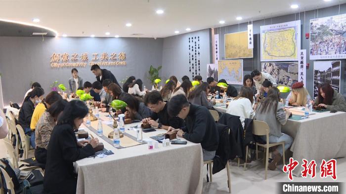兩岸青年在溫州體驗(yàn)工美技藝。溫州市臺(tái)辦 供圖