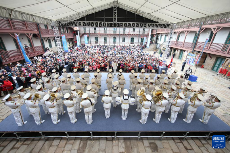 中國人民解放軍海軍軍樂隊在中國人民解放軍海軍博物館舉行慶祝人民海軍成立75周年軍樂展演活動(4月20日攝)。新華社發(fā)(趙林龍 攝)