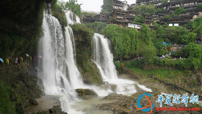 “掛在瀑布上的千年古鎮(zhèn)”——芙蓉古鎮(zhèn)。(攝影:虞鷹)