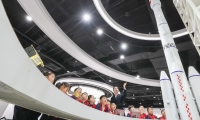 這是4月24日拍攝的湖北武漢2024年“中國航天日”主場活動開幕式現(xiàn)場。