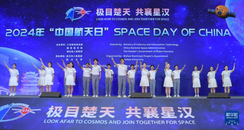 4月24日,在湖北省武漢市舉行的2024年“中國航天日”主場活動開幕式現(xiàn)場,武漢大學(xué)學(xué)生在表演。