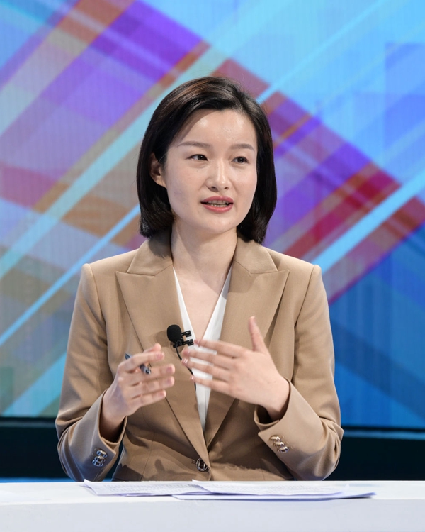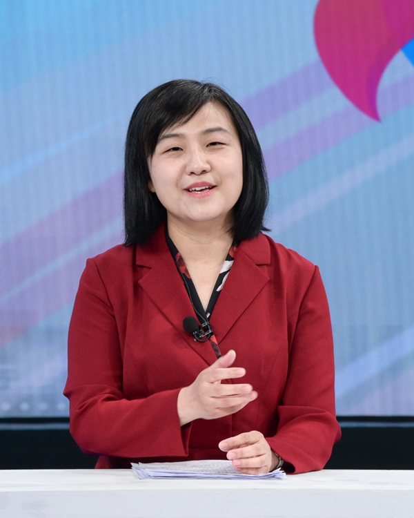 國(guó)家發(fā)展改革委國(guó)民經(jīng)濟(jì)綜合司副司長(zhǎng)李慧在中國(guó)經(jīng)濟(jì)圓桌會(huì)錄制現(xiàn)場(chǎng)交流發(fā)言。新華社記者 李賀 攝