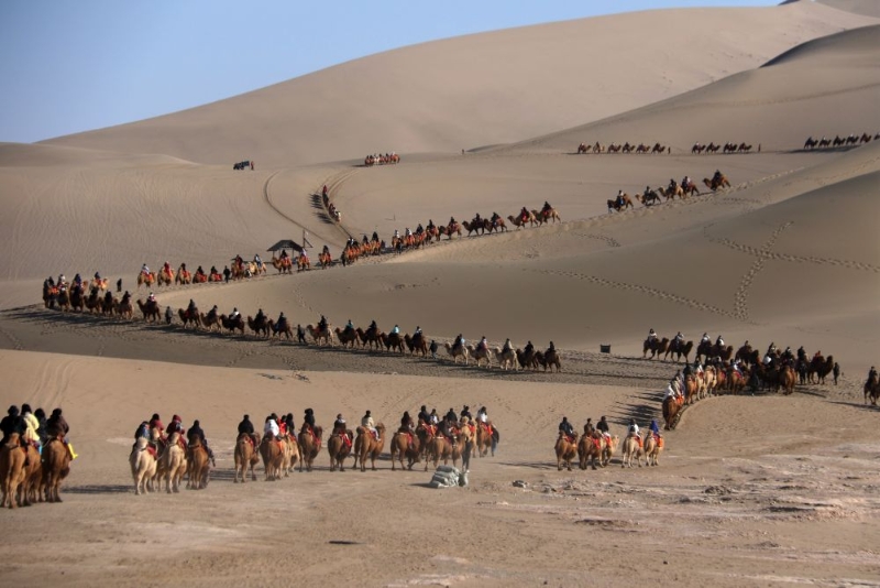 2024年春節(jié)迎來(lái)“8+1”假期,民眾出游熱情高漲,各地景區(qū)景點(diǎn)迎來(lái)參觀熱潮,文旅市場(chǎng)實(shí)現(xiàn)“開門紅”。這是游客在甘肅省敦煌市鳴沙山月牙泉景區(qū)游覽(2024年2月14日攝)。新華社發(fā)(張曉亮 攝)