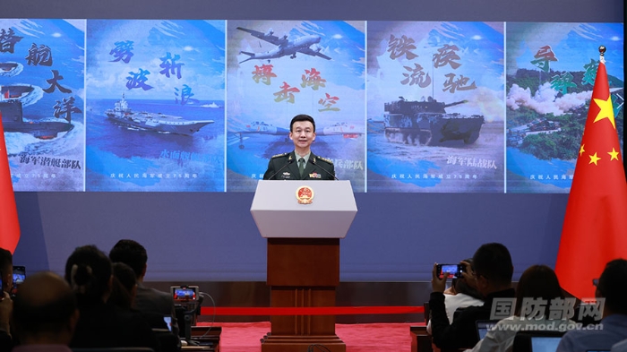 吳謙:如果沒有其他問題,我再說兩句。4月23日是人民海軍成立75周年紀念日,首先祝賀海軍生日快樂!祝愿人民海軍在黨的堅強領導下,劈波斬浪,向海圖強!再送個彩蛋。海軍的戰(zhàn)友委托我們給各位記者朋友贈送一個小紀念品——一套海軍徽章,分別是海軍錨、國產(chǎn)航母、兩棲攻擊艦、大型驅(qū)逐艦、艦載戰(zhàn)斗機、潛艇,希望大家喜歡。記者會結(jié)束后,請到工作人員處領取。