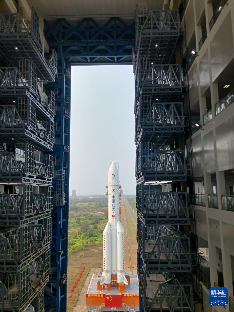 4月27日,嫦娥六號探測器和長征五號遙八運載火箭器箭組合體開始轉(zhuǎn)運。
