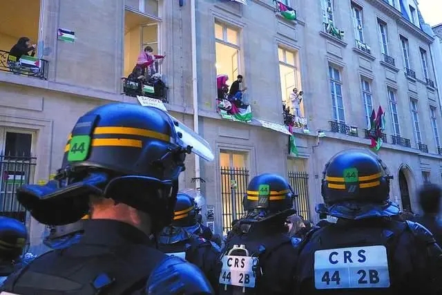4月26日,法國巴黎政治學(xué)院發(fā)生支持巴勒斯坦的抗議活動,防暴警察前往該校。
