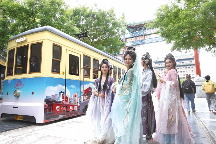 ▲ 4月28日,“2024前門國風(fēng)節(jié)”在北京市前門地區(qū)啟動(dòng)。本次活動(dòng)以“國風(fēng)京韻,潮XING前門”為主題,在前門商業(yè)區(qū)舉辦漢服表演、非遺老字號展售、國風(fēng)市集、讀書換書以及系列沉浸式文化演出等國潮系列文化活動(dòng),將文旅商消費(fèi)內(nèi)容與建筑空間環(huán)境有機(jī)融合,為中外游客及本地消費(fèi)者提供多元化的現(xiàn)代消費(fèi)體驗(yàn)場景,進(jìn)一步打造前門地區(qū)獨(dú)特的國潮文化消費(fèi)新地標(biāo)。圖為身著中國傳統(tǒng)服飾的游人徜徉在前門步行街。