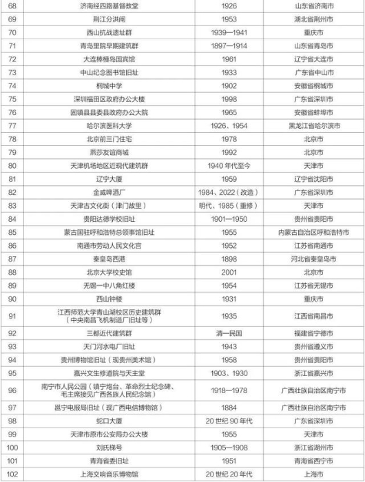第九批中國20世紀建筑遺產(chǎn)項目推介名錄出爐,共102個