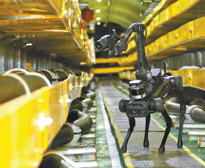 國(guó)產(chǎn)四足巡檢機(jī)器人在北京市豐臺(tái)區(qū)玉泉營(yíng)電纜隧道內(nèi)開(kāi)展地下輸電線路巡檢。
