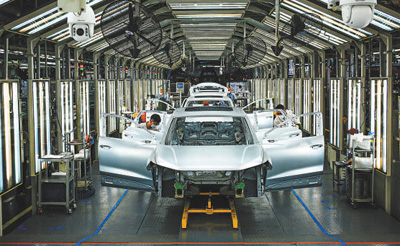 廣東省佛山市一汽大眾汽車(chē)智慧工廠內(nèi),新能源汽車(chē)生產(chǎn)線開(kāi)足馬力。