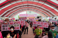臺(tái)電二期新建燃?xì)鈾C(jī)組計(jì)劃擬增4部燃?xì)鈾C(jī)與4座天然氣儲(chǔ)槽,引發(fā)臺(tái)中逾600位民眾29日到說(shuō)明會(huì)抗議,反對(duì)港區(qū)內(nèi)增設(shè)儲(chǔ)氣槽。(圖片來(lái)源:臺(tái)灣“中時(shí)新聞網(wǎng)”)