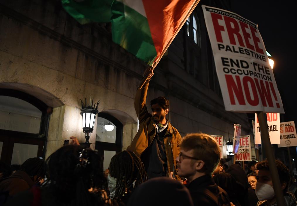 4月24日凌晨,抗議者在美國紐約市哥倫比亞大學(xué)參加示威活動(dòng)。(圖源:新華社)