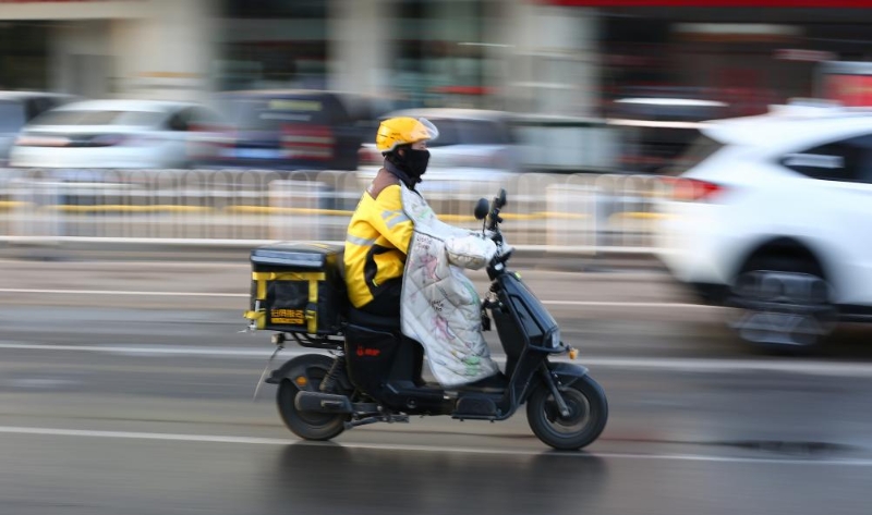2024年5月1日,山東省滕州市善國路,一名外賣騎手正在送餐。 新華社發(fā)(李志軍攝)
