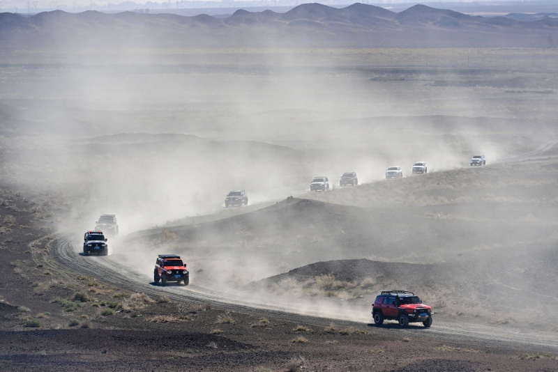 新疆克拉瑪依市烏爾禾區(qū),正午時(shí)分,隨著一聲發(fā)令槍響,130余輛越野車(chē)和20余輛摩托車(chē)引擎轟鳴,從世界魔鬼城景區(qū)達(dá)喀爾1號(hào)大本營(yíng)飛馳而出,開(kāi)啟冒險(xiǎn)之旅。