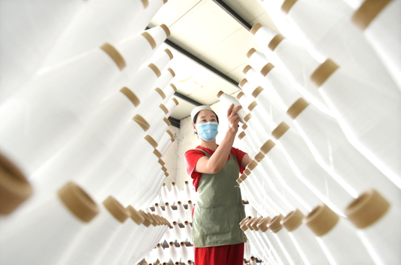 2024年5月1日,工人在山東省淄博市沂源縣悅莊工業(yè)園一玻纖企業(yè)整理加工的產(chǎn)品。新華社發(fā)(趙東山攝)