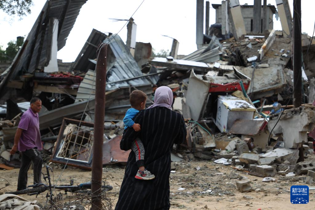 5月6日,在加沙地帶南部城市拉法,一名男孩走過(guò)以軍空襲后的廢墟。新華社發(fā)(哈立德·奧馬爾 攝)