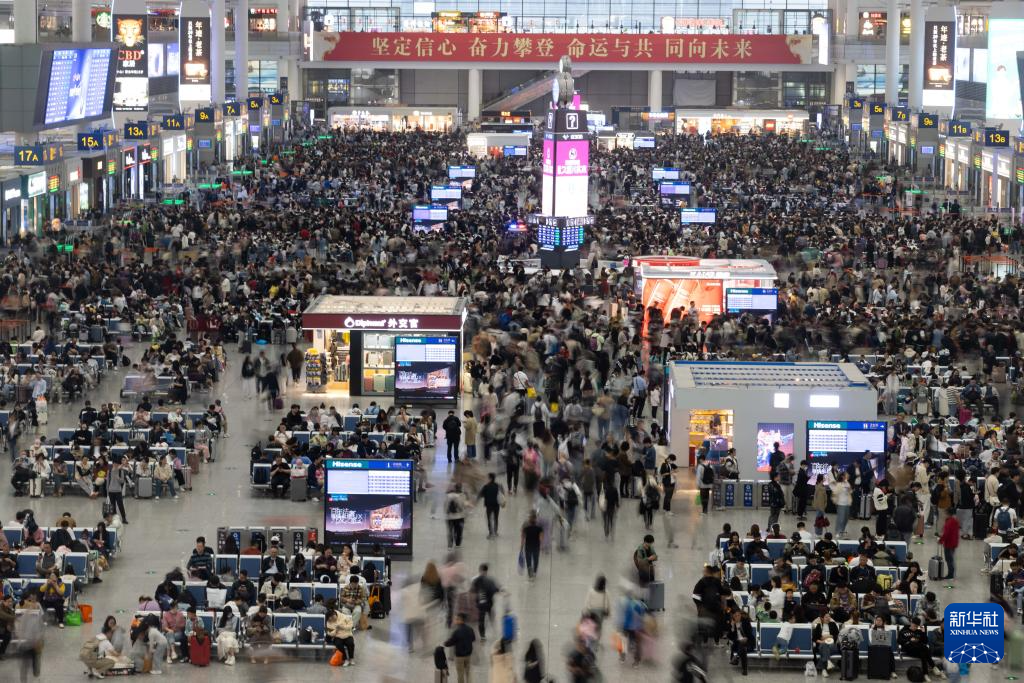5月5日,旅客在上海虹橋火車站候車。當(dāng)日是“五一”假期最后一天,全國鐵路、公路迎來返程客流高峰。(圖源:新華社)