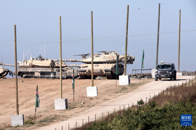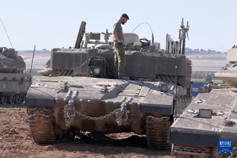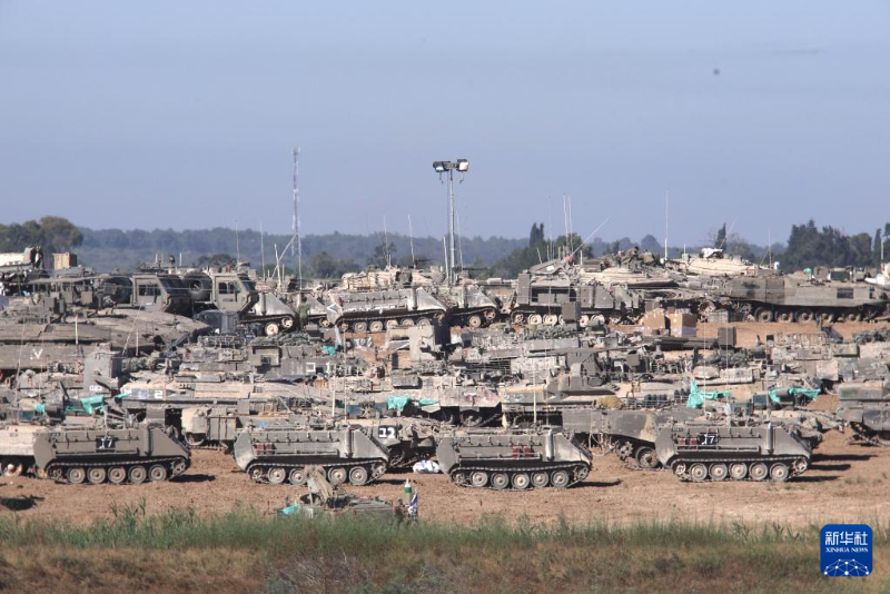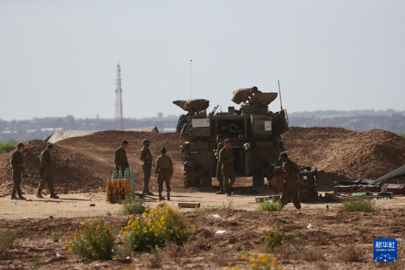 5月8日,以軍裝甲車在以色列南部凱雷姆沙洛姆口岸附近部署。新華社發(fā)(伊蘭·阿薩亞格攝/基尼圖片社)