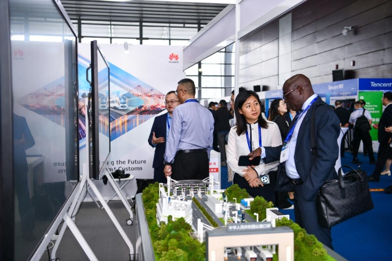5月8日,嘉賓在第六屆全球AEO大會華為展臺了解華為智慧口岸解決方案。新華社記者 梁旭 攝