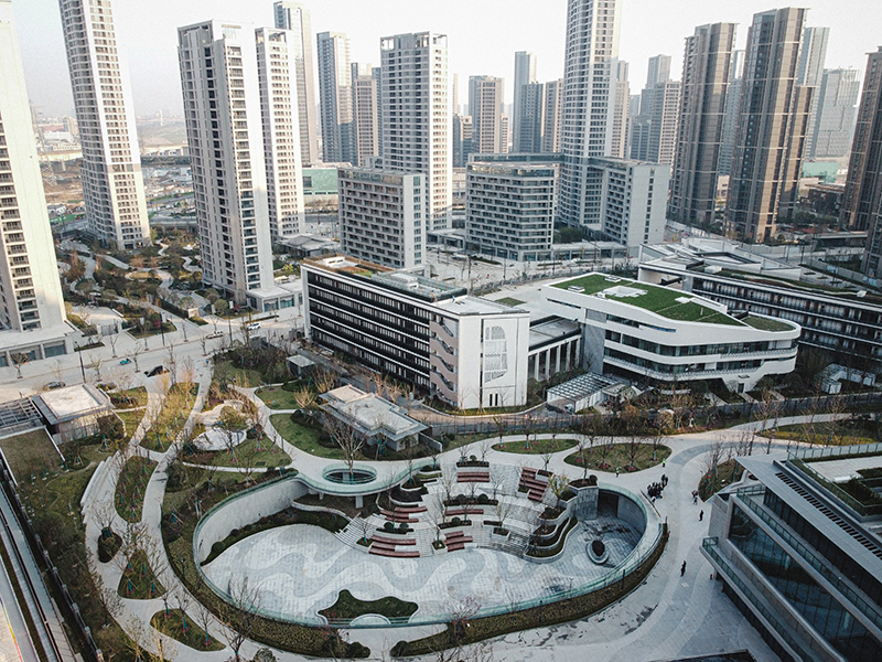 這是2021年12月29日拍攝的杭州亞運村媒體村建筑(無人機照片)。當日,杭州亞運村舉行竣工儀式。(圖源:新華社)