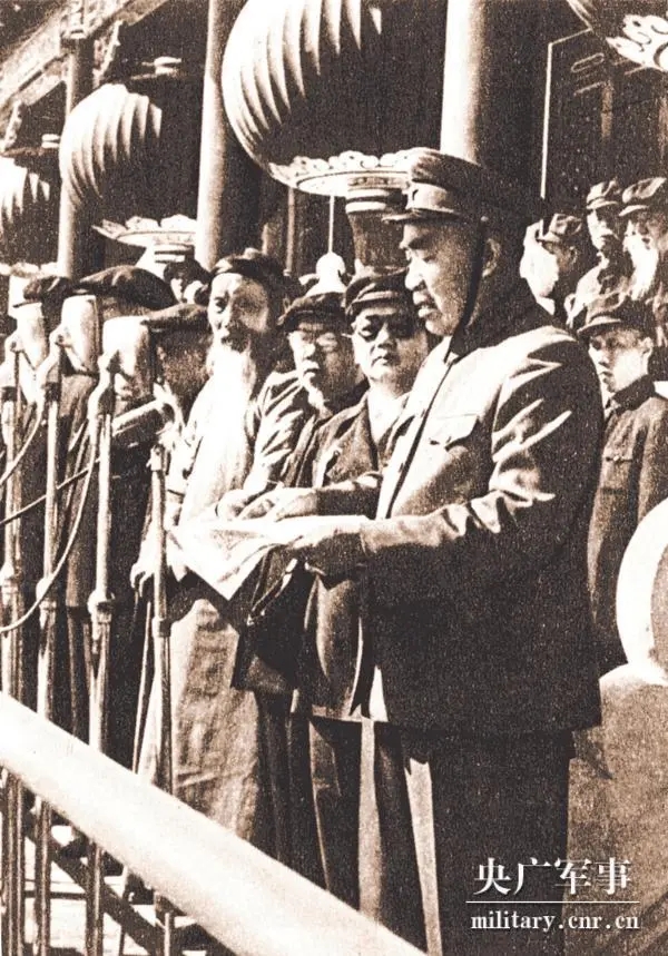 檢閱后,朱德總司令登臨檢閱臺宣讀中國人民解放軍總部給全國武裝部隊的命令。命令指出: