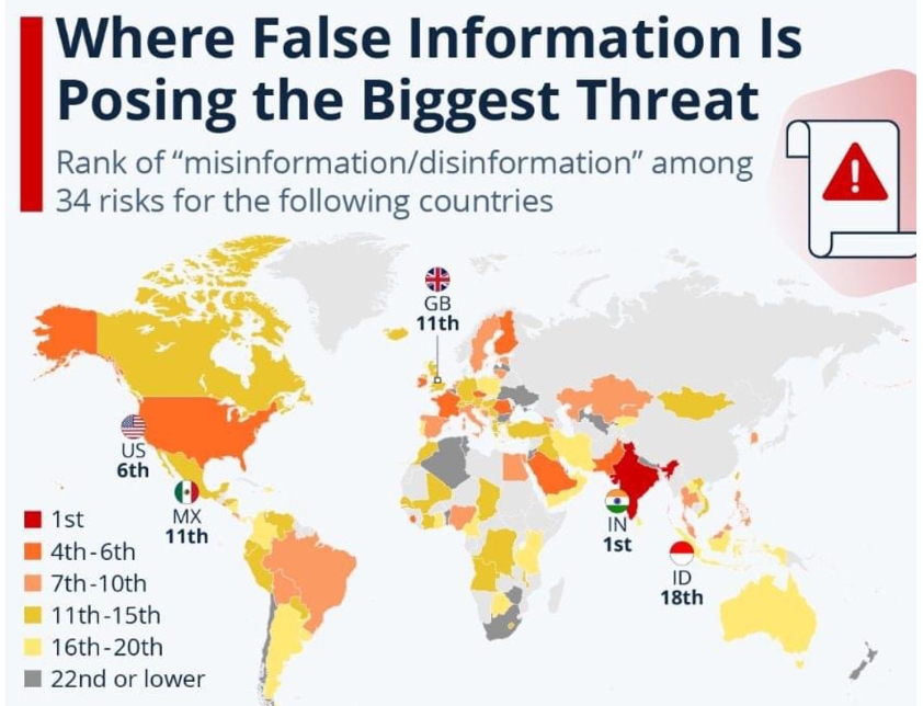 附圖是世界經(jīng)濟論壇對于假訊息風險的評估,排第一的是哪個?