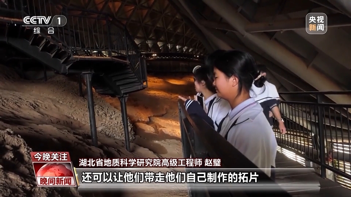 湖北省地質(zhì)科學(xué)研究院高級工程師趙璧:我們在這里除了帶領(lǐng)中小學(xué)生看恐龍蛋以外,還可以讓他們帶走他們自己制作的拓片,他們在這里學(xué)到知識的同時,也可以獲得更多的樂趣。