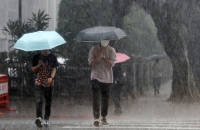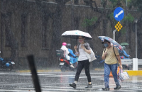臺北市中正區(qū)街頭民眾撐傘避雨。(臺灣“中央社”檔案照片)