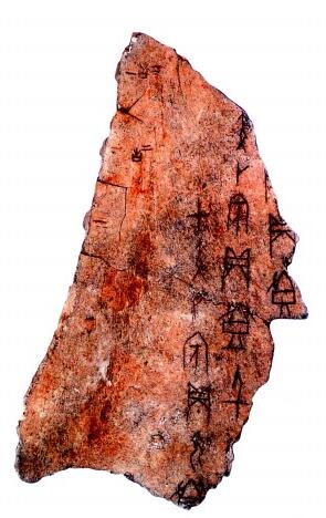 以“線”表流水。江河在大地上流淌會(huì)形成支流匯入干流的水系,甲骨文或以線條來描摹。如“(58)”字作(59),即今“流”字異體,字從水,左邊像(60)(不)之字,其實(shí)并非“不”字,而是河流、水系的象形字,因其與“不”字形近才誤隸定為“不”。卜辭中“(61)”與“疾”構(gòu)成“(61)疾”一詞,即“流疾”,是流行性疫病的意思?!埃?1)疾”也以合文形式出現(xiàn),寫作(62),“(61)”省去了水旁。
