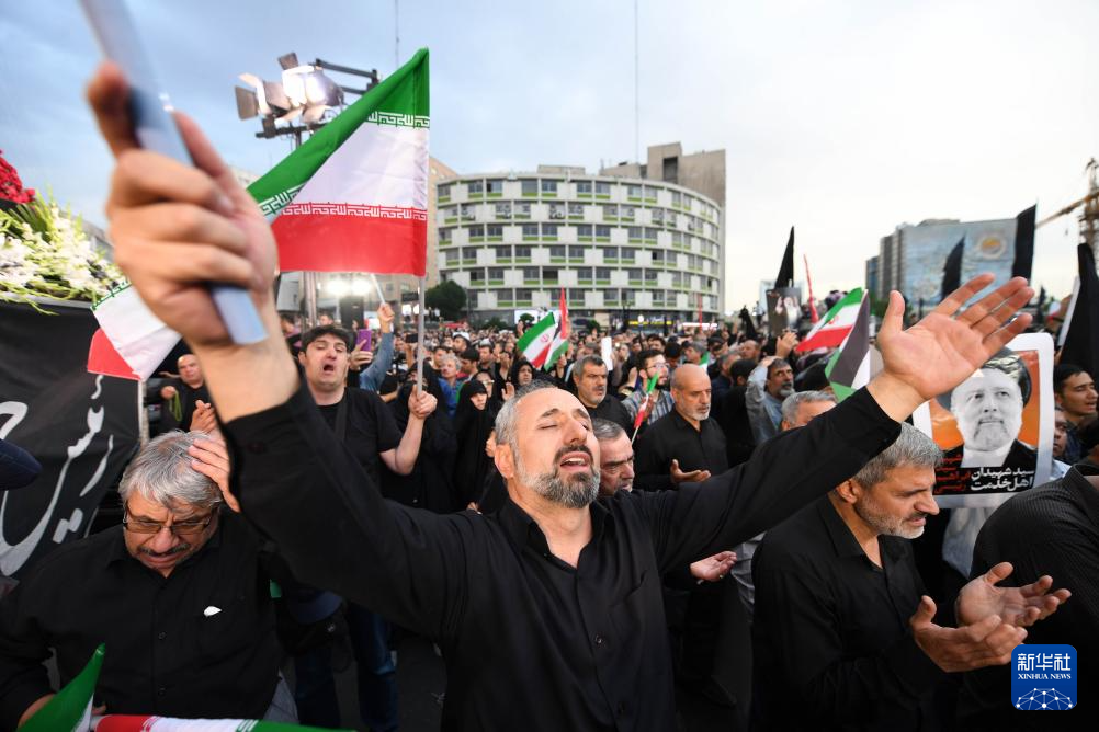 5月20日,在伊朗首都德黑蘭,民眾悼念直升機(jī)墜毀事件遇難者。(圖源:新華社)