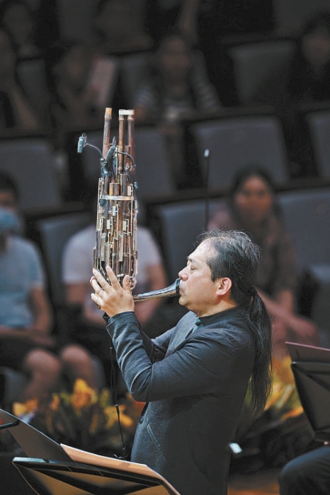 從開篇時(shí)遼闊回響的遙遠(yuǎn)之聲,到結(jié)尾時(shí)頻繁變化的脈動(dòng)節(jié)拍,當(dāng)代作曲家貝恩德·理查德·多伊奇為笙與樂隊(duì)而作的《現(xiàn)象》一氣呵成,繁復(fù)精彩。5月17日和18日,著名笙演奏家吳巍與指揮家錢駿平執(zhí)棒的國(guó)家大劇院管弦樂團(tuán)攜手,一同帶來了這部作品的中國(guó)首演。感謝過觀眾的掌聲,吳巍回到后臺(tái)休息室,滿身的汗已經(jīng)濕透了衣服。
