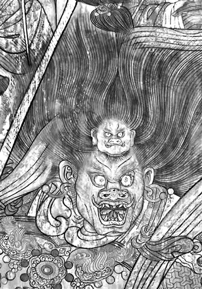 接下來(lái)要說(shuō)的,可能和你以前的認(rèn)識(shí)不太一樣。我們一般以為,天蓬元帥下凡錯(cuò)投豬胎,變成了豬八戒,這是《西游記》的原創(chuàng)情節(jié)。那我們來(lái)看山西芮城永樂(lè)宮一幅壁畫的局部,畫的就是天蓬元帥。你看,是不是豬頭豬臉的?