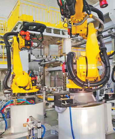 河北保定長城精工自動化工廠,5G—A汽車柔性產(chǎn)線上,龐大的機械臂吸起汽車頂蓋,空中盤旋一圈,便涂抹完頂蓋上的膠條,一套動作行云流水。