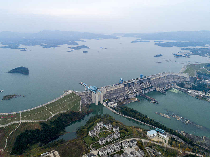 位于湖北十堰丹江口市的丹江口水庫大壩(2019年11月26日攝,無人機(jī)照片)。(圖源:新華社)