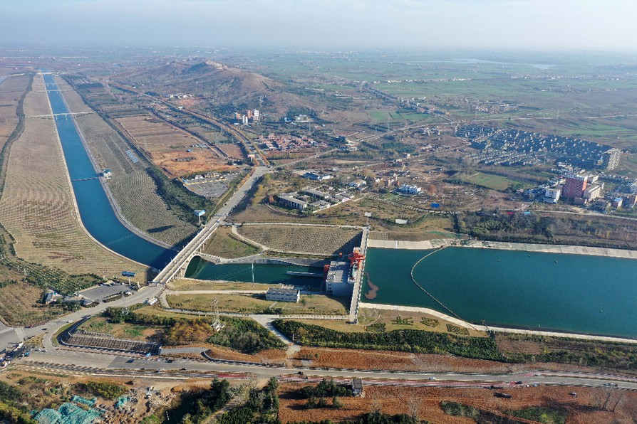 位于河南南陽淅川縣的南水北調(diào)中線工程渠首(2019年12月9日攝,無人機(jī)照片)。(圖源:新華社)