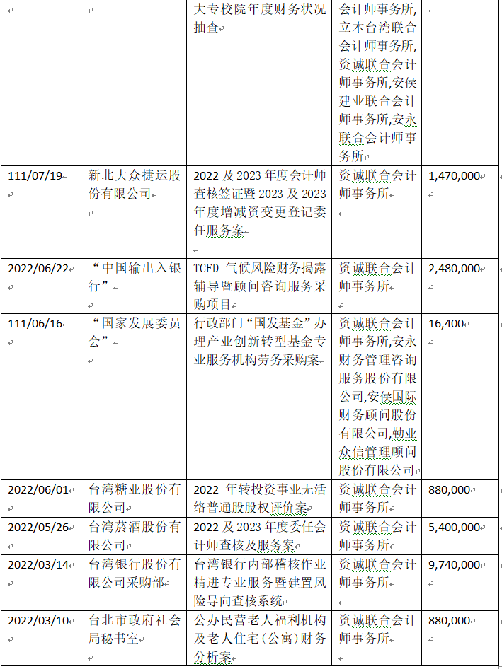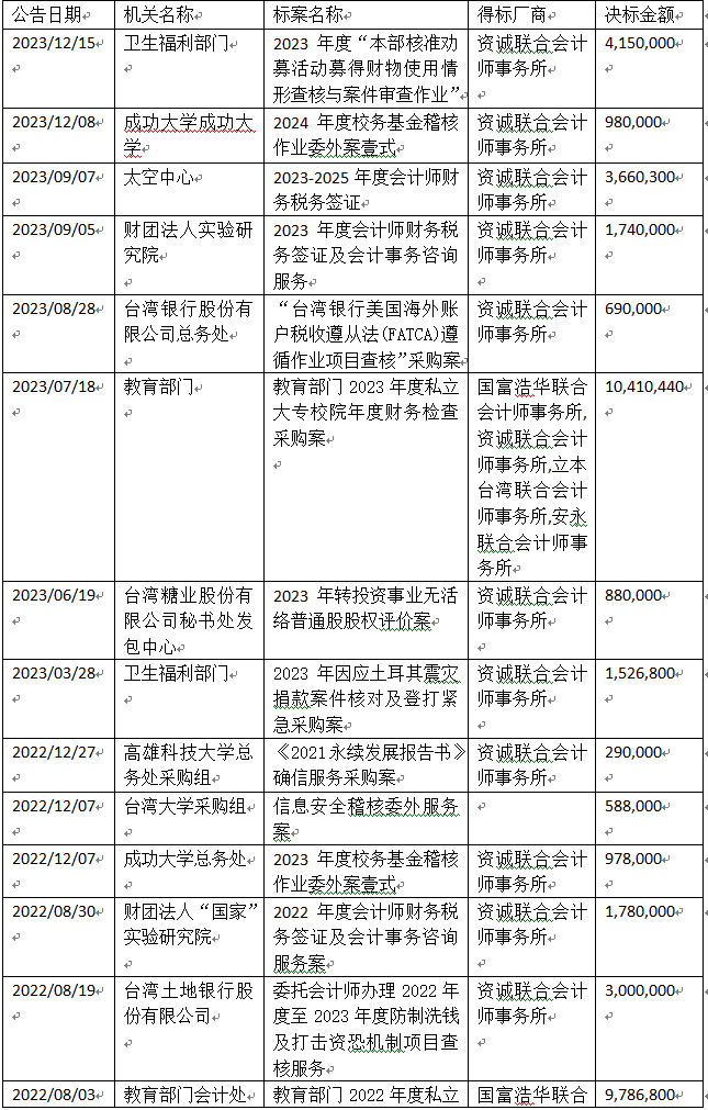 表一:資誠聯(lián)合會計師事務(wù)所2022-2023年獲得的公部門標(biāo)案