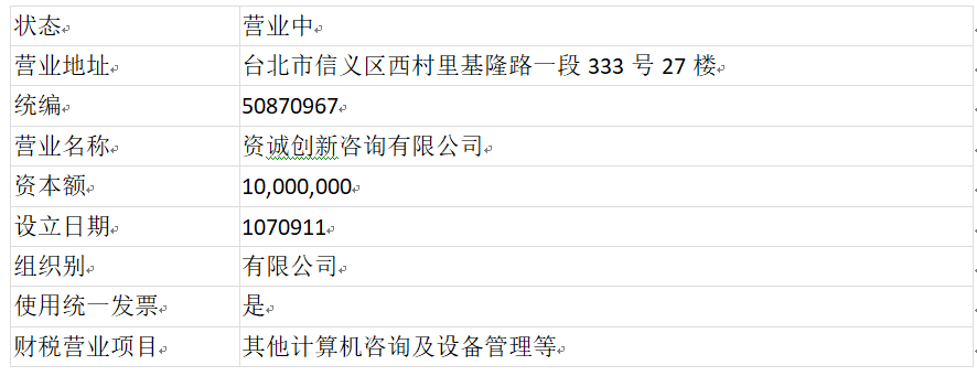 表三:資誠創(chuàng)新咨詢有限公司基本情況