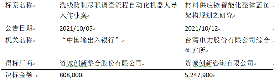 表四:資誠創(chuàng)新整合股份有限公司與資誠創(chuàng)新咨詢有限公司標(biāo)案