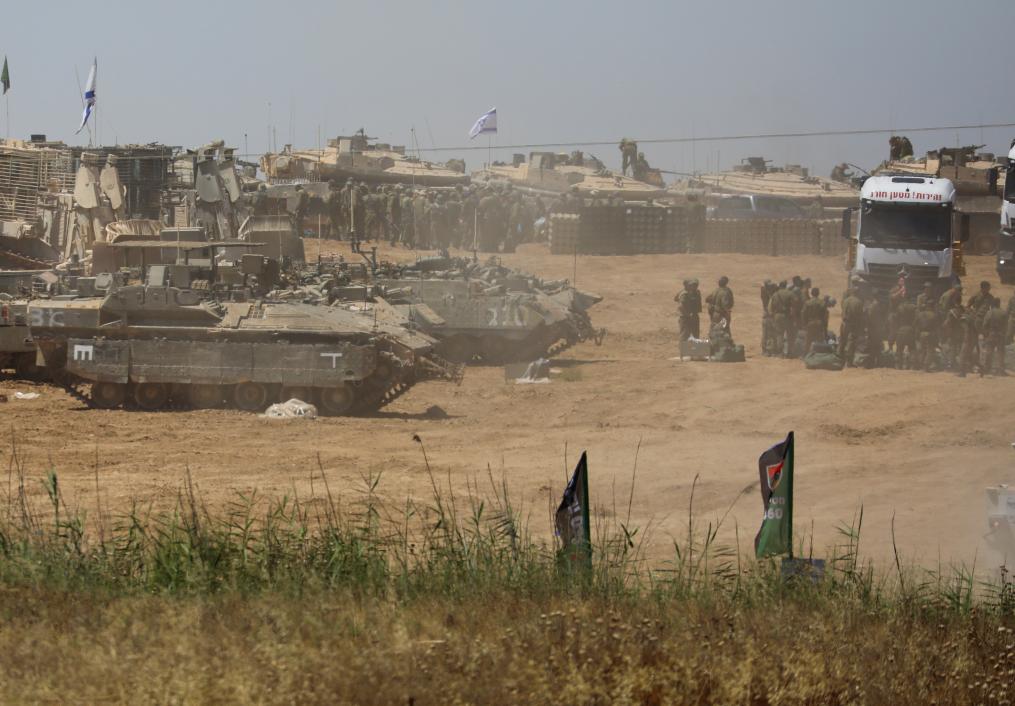 5月8日,以軍部隊在以色列南部凱雷姆沙洛姆口岸附近部署。(圖源:新華社)