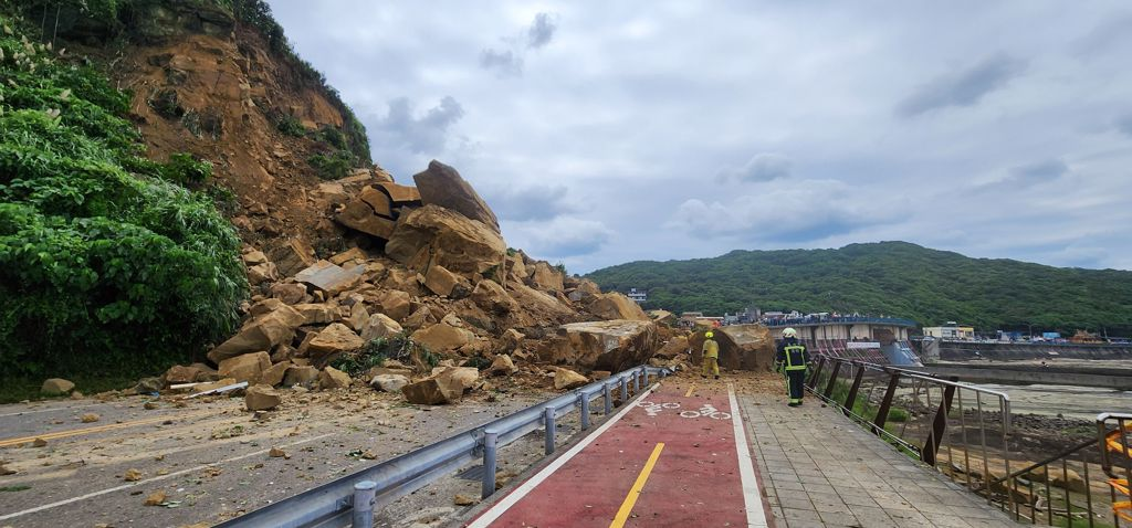 潮境公園入口“半片山”土石崩落。(翻攝畫(huà)面/臺(tái)灣“中時(shí)新聞網(wǎng)”)