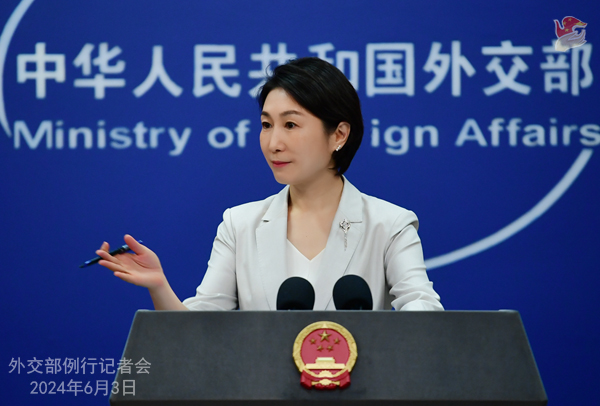 中新網(wǎng)北京6月3日電 (記者 黃鈺欽 郭超凱)中國(guó)外交部發(fā)言人毛寧6月3日主持例行記者會(huì)。