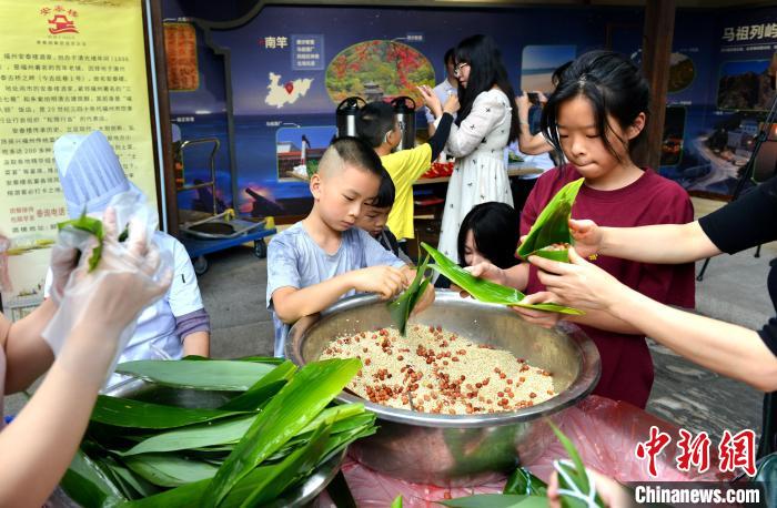 6月8日,傳承同根文化 “粽”享兩岸親情——在榕臺(tái)胞端午節(jié)聯(lián)誼活動(dòng)在位于福州的臺(tái)灣會(huì)館舉行,80余位在榕臺(tái)胞及兩岸婚姻家庭成員等代表參加。圖為小朋友學(xué)包粽子。呂明 攝