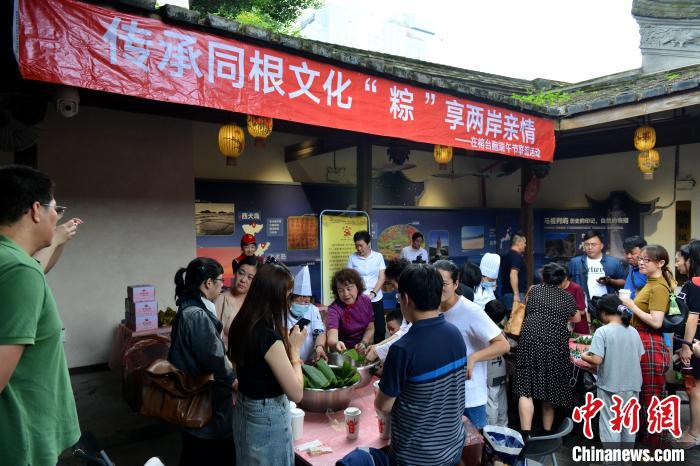 “粽”享兩岸親情——在榕臺(tái)胞端午節(jié)聯(lián)誼活動(dòng)在位于福州的臺(tái)灣會(huì)館舉行,80余位在榕臺(tái)胞及兩岸婚姻家庭成員等代表參加。圖為來賓品嘗粽子。呂明 攝