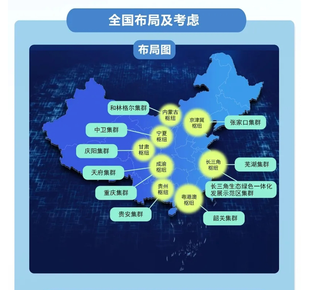 “東數(shù)西算”工程在全國布局了8個(gè)國家算力樞紐節(jié)點(diǎn)。(圖源:國家發(fā)展改革委)