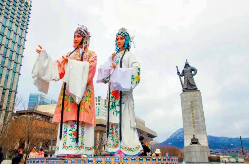 淮劇演員今年初走進(jìn)韓國(guó),在首爾街頭表演 圖片來(lái)源:香港《大公報(bào)》
