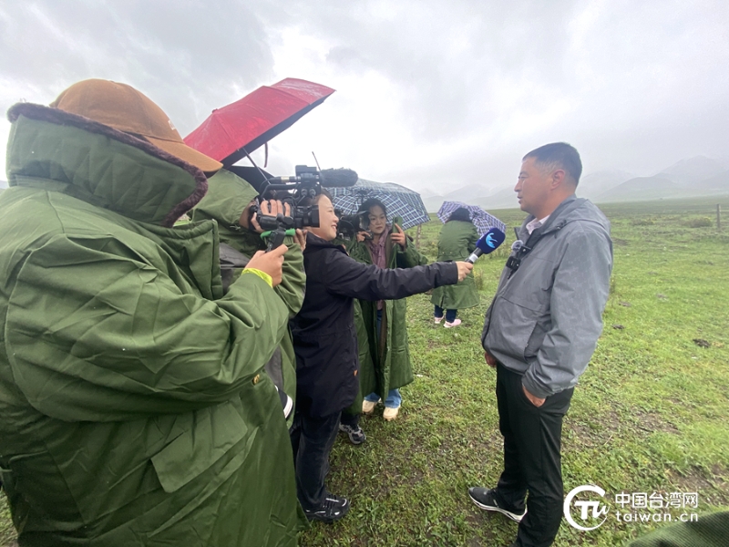 6月19日至23日,“說如意甘肅——海峽兩岸媒體人走進白牦牛故鄉(xiāng)”主題活動在甘肅舉辦。圖為記者們在天祝縣抓喜秀龍草原上采訪牧民。(中國臺灣網(wǎng)記者 李寧 攝)