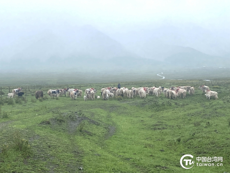 抓喜秀龍草原上,白牦牛悠閑漫步。(中國臺灣網(wǎng)記者 李寧 攝)